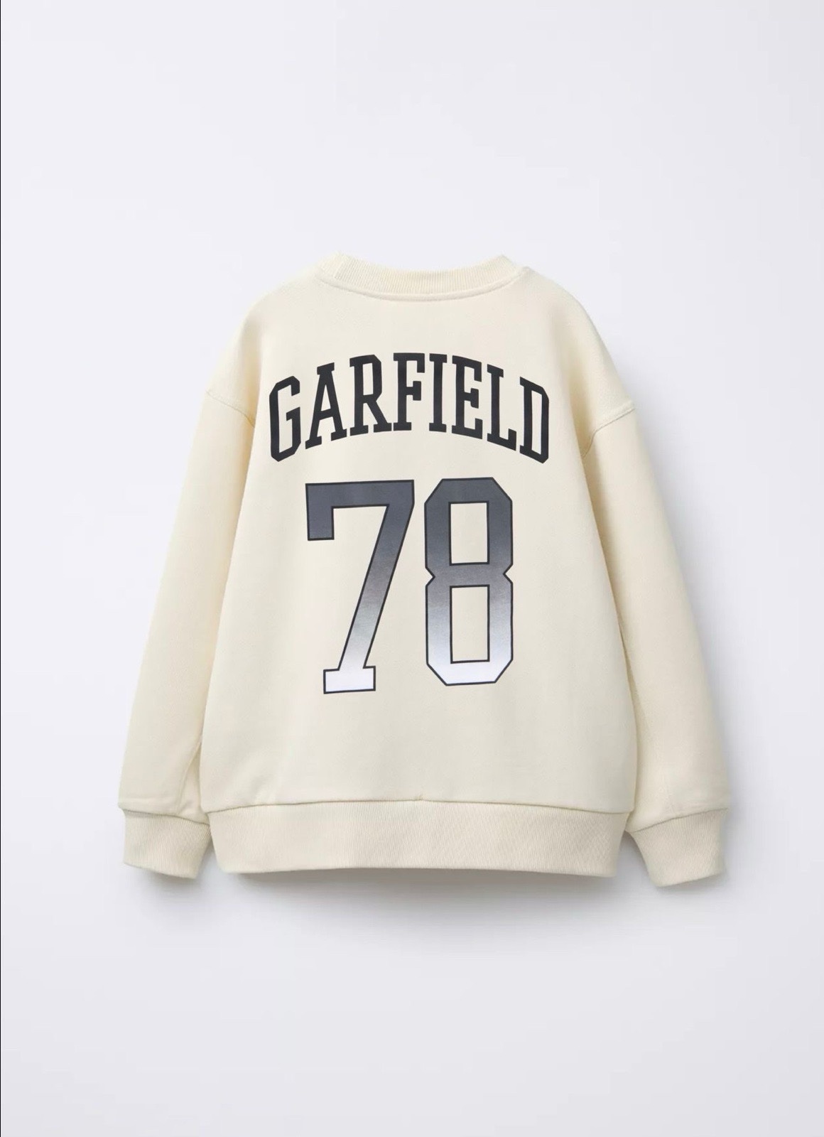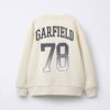 Детска блуза Гарфилд с дълъг ръкав и принт на героя Гарфилд (Garfield). Изработен е от 100% памук, което го прави мек и дишащ. Суичърът е в екрю цвят, с голям принт на Гарфилд, който играе футбол, отпред.