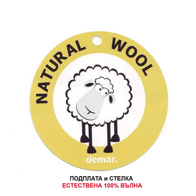 Лицева част – други материали, хастар – естествена вълна, стелка – естествена вълна, подметка – други материали.