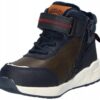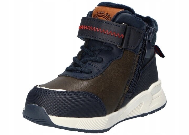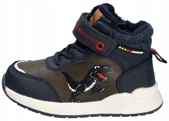 Детски боти American Club XD168B, популярни със своя дизайн с динозавър. Те са предназначени за момчета и се предлагат в комбинация от кафяв и тъмносин цвят.
