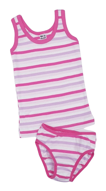 Комплект за момиче от 2 части – потник и бикини в лилаво. Комплектът е изработен от РИПС, удобен за момиченцата.