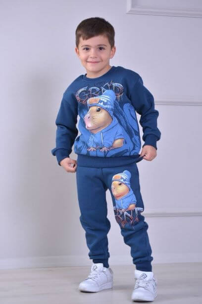 Детски спортен комплект 2 части за момче Синя Капибара. Блузата е с дълъг ръкав. Има картинка на блузата и панталона.