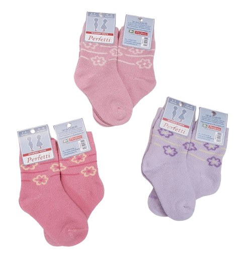 Продават се на пакет в един и същ размер. Опаковани са по 6 чифта в 3 различни цвята /по два от цвят/. Изработени са от 85% памук, 10% полиамид и 5% еластан. Термо чорапките са топли, удобни и меки, и идеално прилягат на детските крачета.