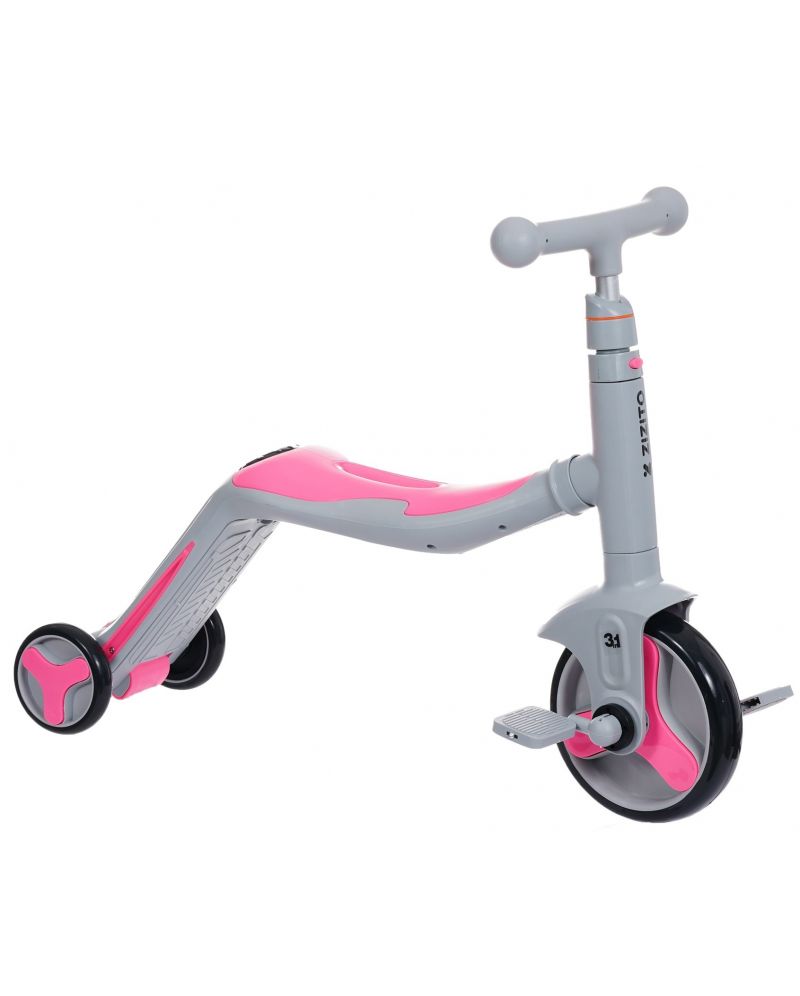 Детско колело Zizito Haidy 3 в 1 е многофункционално превозно средство, което се трансформира от триколка в колело за баланс и тротинетка (скутер). Розов цвят.