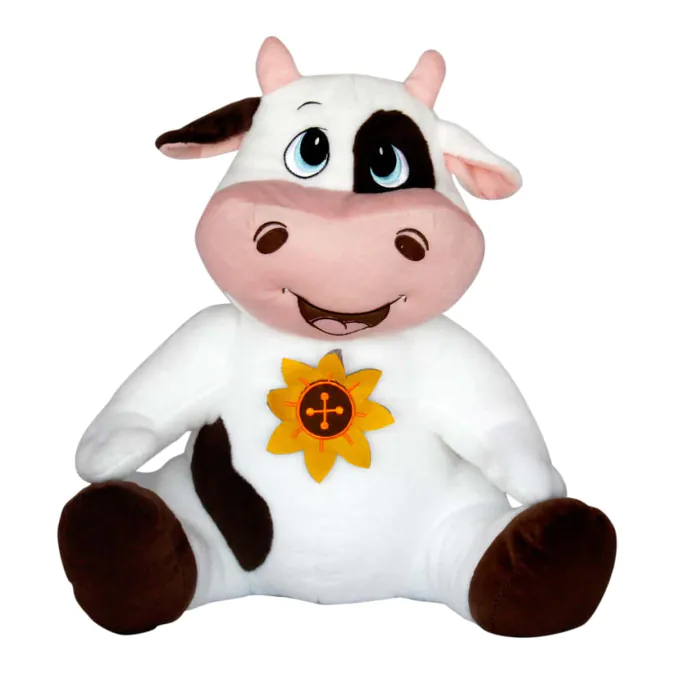 Голяма плюшена кравичка с цветенце. Тя е изработена от висококачествен плюш, който е много мек на допир. Бързо ще се превърне в любимата играчка на вашето дете.