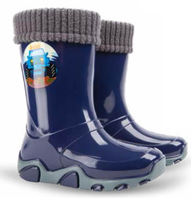 Гумени ботуши с топъл чорап в тъмно синьо *DEMAR. Те са изключително здрави и са със сдвоени номера за по-дълга употреба. Гумените ботуши са с топло подвижно чорапче, което може да се отстрани по всяко време. Когато ботушките започнат да омаляват на вашето дете, извадете чорапчето и то ще може да ги носи още известно време. Имат олекотено и еластично ходило, против проникване на вода, сняг или киша. По тях има светло-отразителни елементи. WATERPROOF – не пропускат вода!