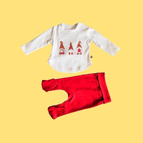 Представяме ви очарователен комплет за бебе, състоящ се от две части, който ще направи всяко малко бебче да изглежда прекрасно! Червените ританки придават закачлив и модерен вид. Идеални за създаване на различни комбинации и лесни за обличане. Блузата е с дълъг ръкав в бяло и е с красива картинка, която добавя добълнителна доза сладост. Тя е удобна и практична, идеална за прохладните дни. Комплектът е перфектен избор за всеки повод – от разходки в парка до специални събития като Коледа и Нова Година. Лесно се съчетава с други цветове и аксесоари.