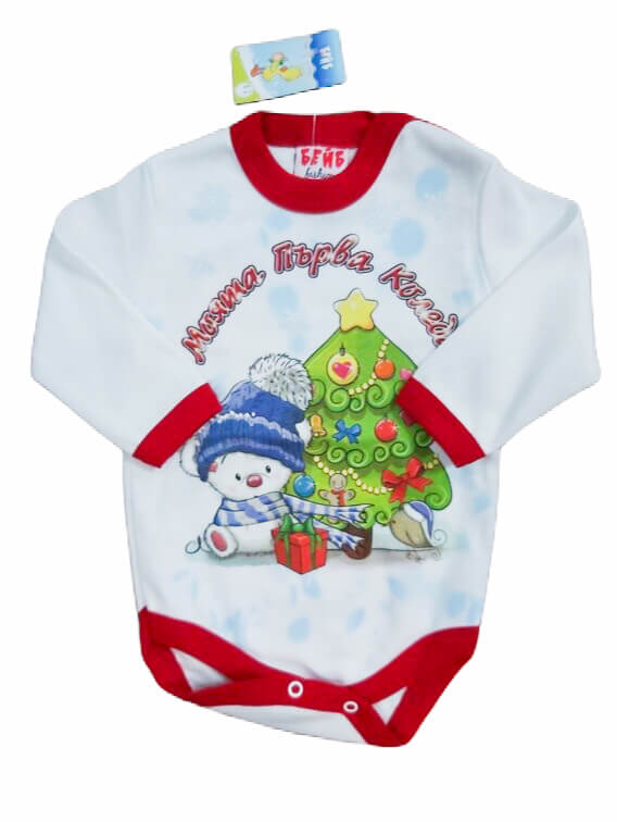Коледно бебешко боди в бяло Моята Първа Коледа *Бейб