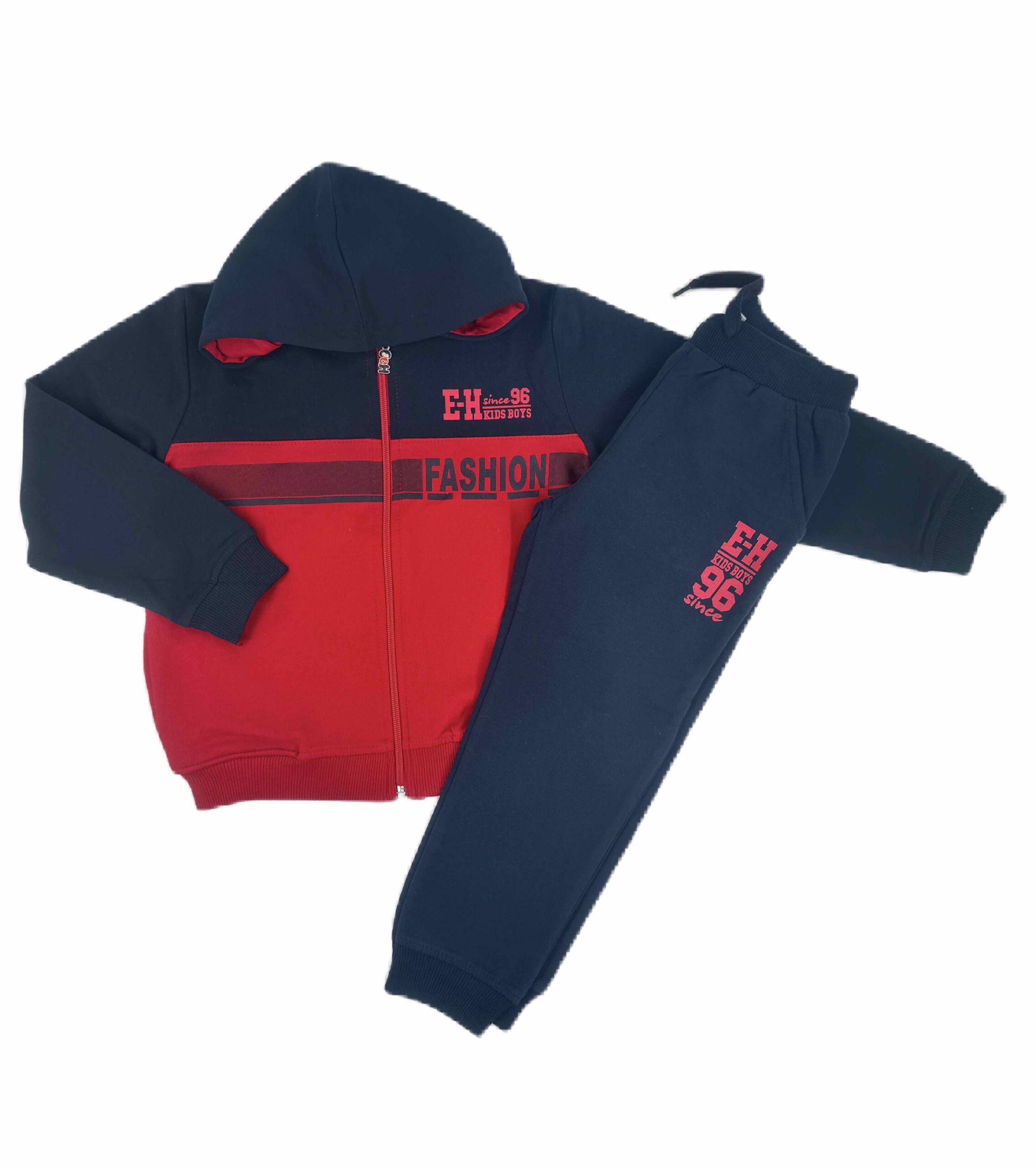 Комплект за момче с цип и качулка. Материята е 100% памук.