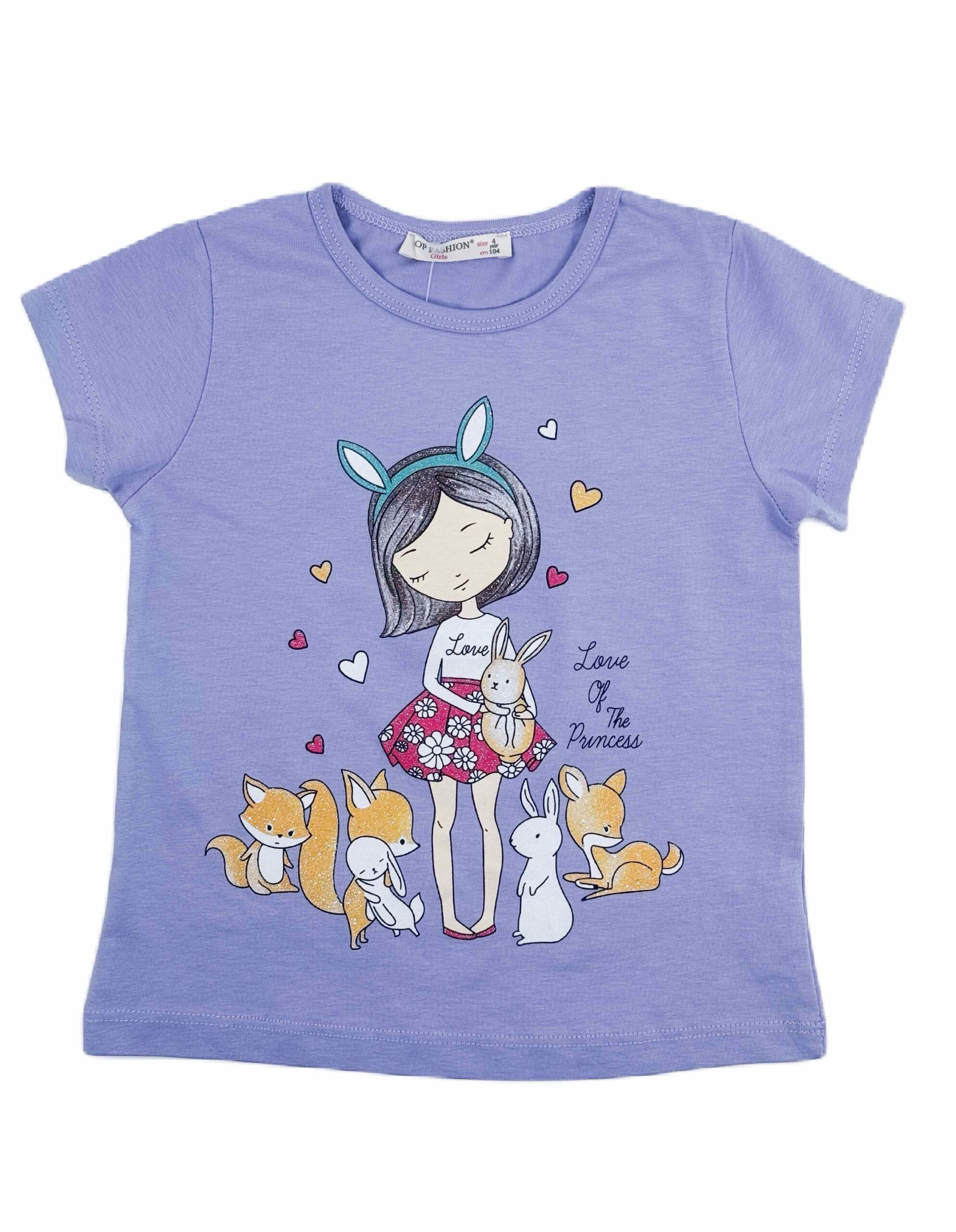 Тениска за момиче. Отпред има момиче, обичащо животинките. Блузката е изработена от тънка и мека памучна материя.