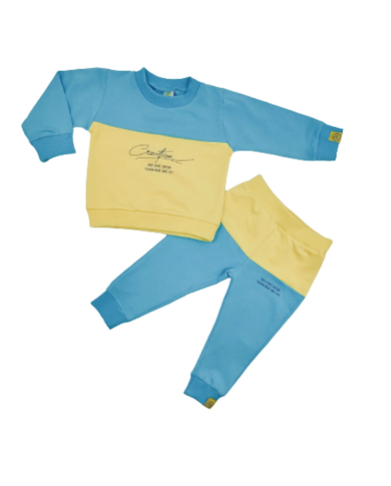 RACH Комплект за момче в два цвята, изработен от висококачествена леко ватирана памучна материя. Блузата разполага със скрити копчета на рамото за по-лесно обличане. Долнището е от същия мек памук като блузата. Предоставете на вашето малко чудо нежност и удобство с този стилно изглеждащ комплект. Перфектен за всякакви поводи. Поръчайте сега и направете деня на вашето дете още по-специален!