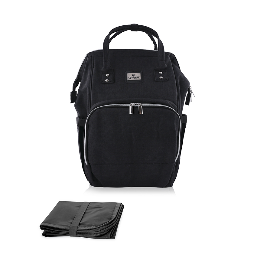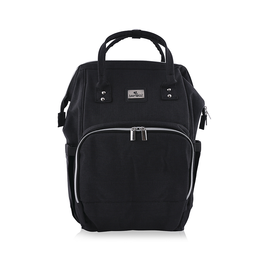 Отвор с два ципа за достъп до широкото основно вътрешно отделение.,Вътрешен цип към отделение за важни предмети.,Вътрешно отделение за лесен достъп.,Преден джоб за мобилен телефон.,Широко външно отделение с цип.,Джоб с вътрешно термопокритие за шишета за хранене.,Два прозрачни джоба за поставяне на мокри предмети.,Страничен джоб за шишета и напитки.,Регулируеми презрамки на раницата с дишащ мрежест материал.,Меко подплатен гръб с дишащ мрежест материал.,Кукички за закачане към количка.,Мека, почистваща се подложка за повиване.///