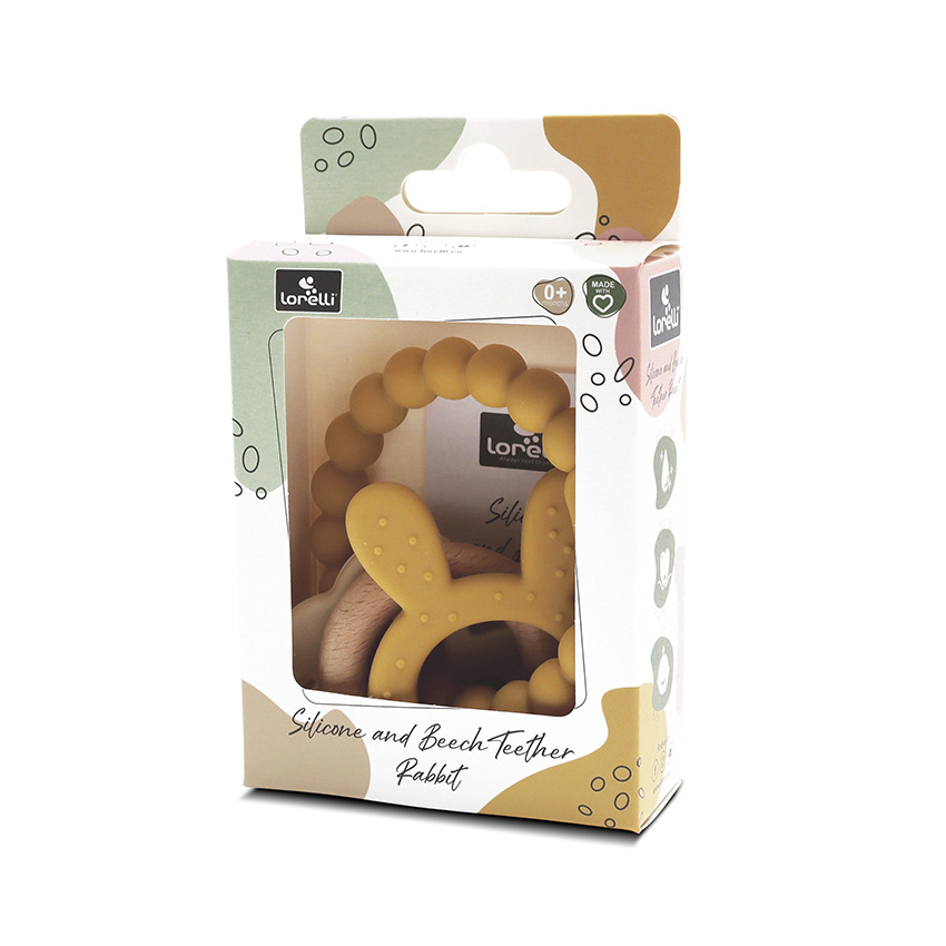СИЛИКОНОВА ГРИЗАЛКА С БУК ЗАЙЧЕ NATURAL YELLOW