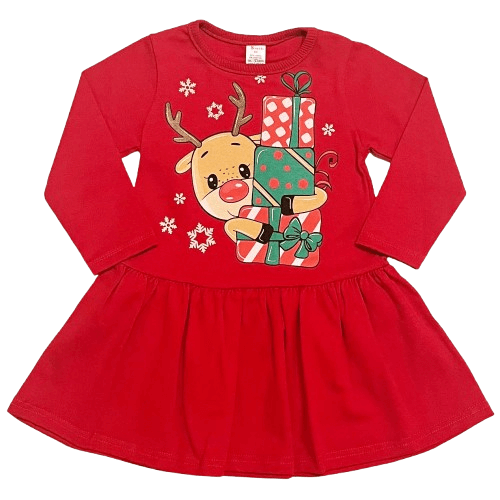 Роклята има коледна картинка на еленче в горната част.